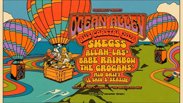 SummerSalt is bringing Ocean Alley’s AUS Coastal 2026 tour to Sunshine Coast Stadium, joined by SKEGSS, ALLAH-LAS, BABE RAINBOW, MID DRIFT, LE SHIV, and SEASIDE. Enjoy a sun-soaked afternoon with vibrant live music, creating an unforgettable coastal vibe in a glittering celebration of sound and summer.